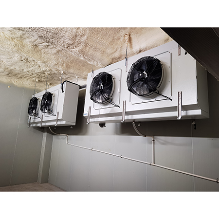 利用壓縮機排氣的高溫制冷劑來化霜,環保節能; 自動熱氟融霜,除霜速度快、效果好、能耗?。?自動熱氟融霜是靠電腦自動化控制的,當冷庫內需要融霜時